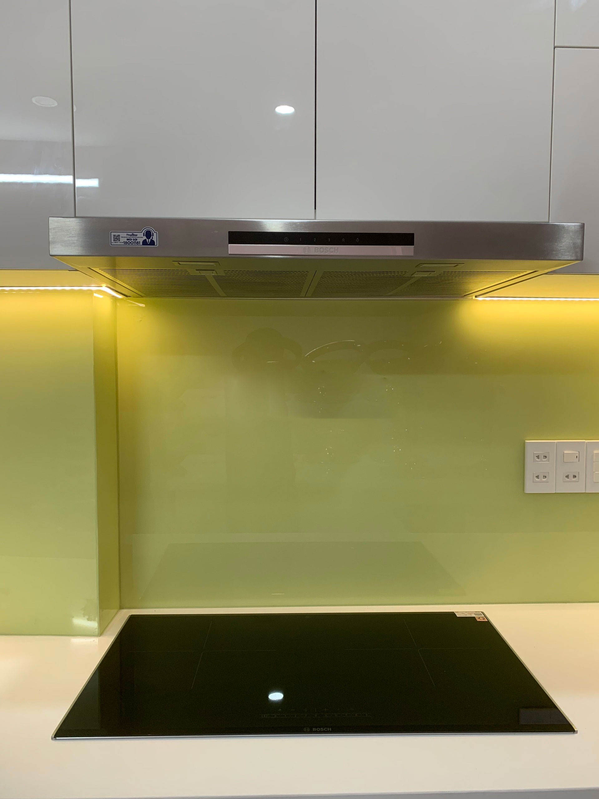 - Khoảng cách tối thiểu đến bề mặt bếp từ: 550mm