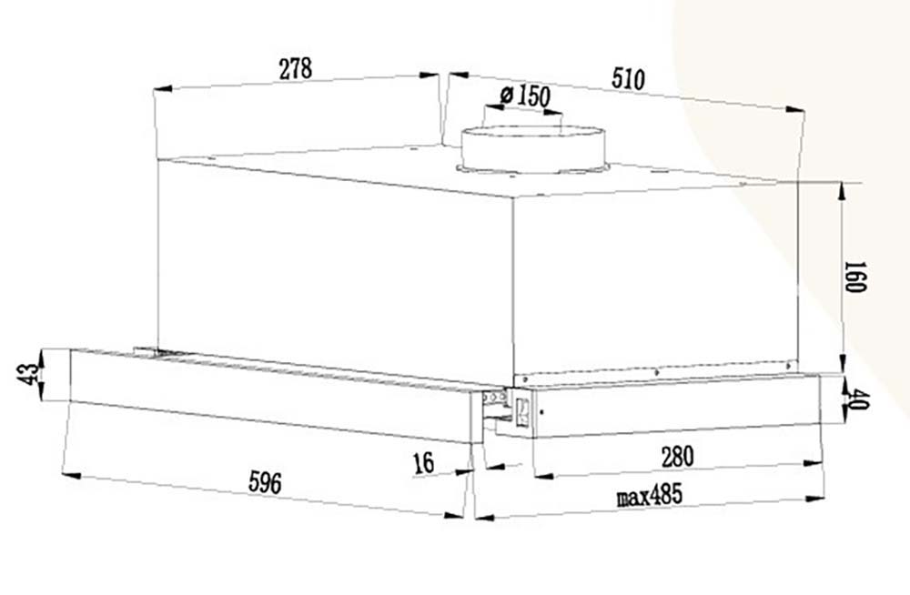 Bản vẽ kích thước Máy hút mùi CANZY CZ 516B 60cm âm tủ