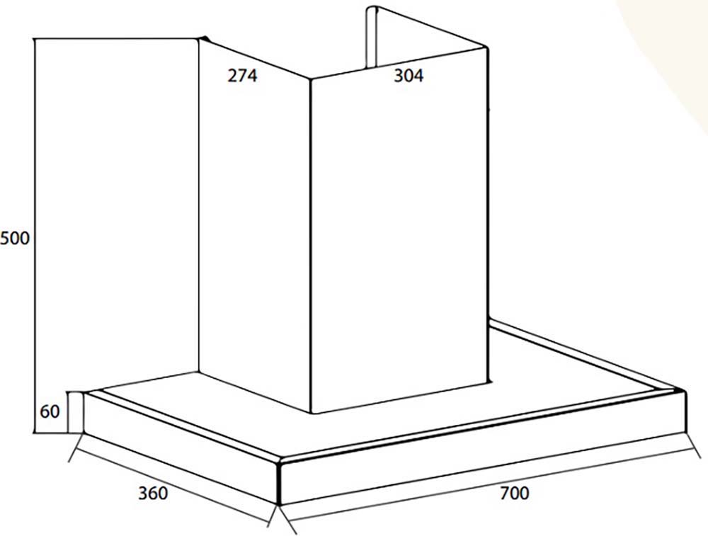 Bản vẽ kích thước Máy hút mùi CANZY CZ 636PRO 70cm chữ T