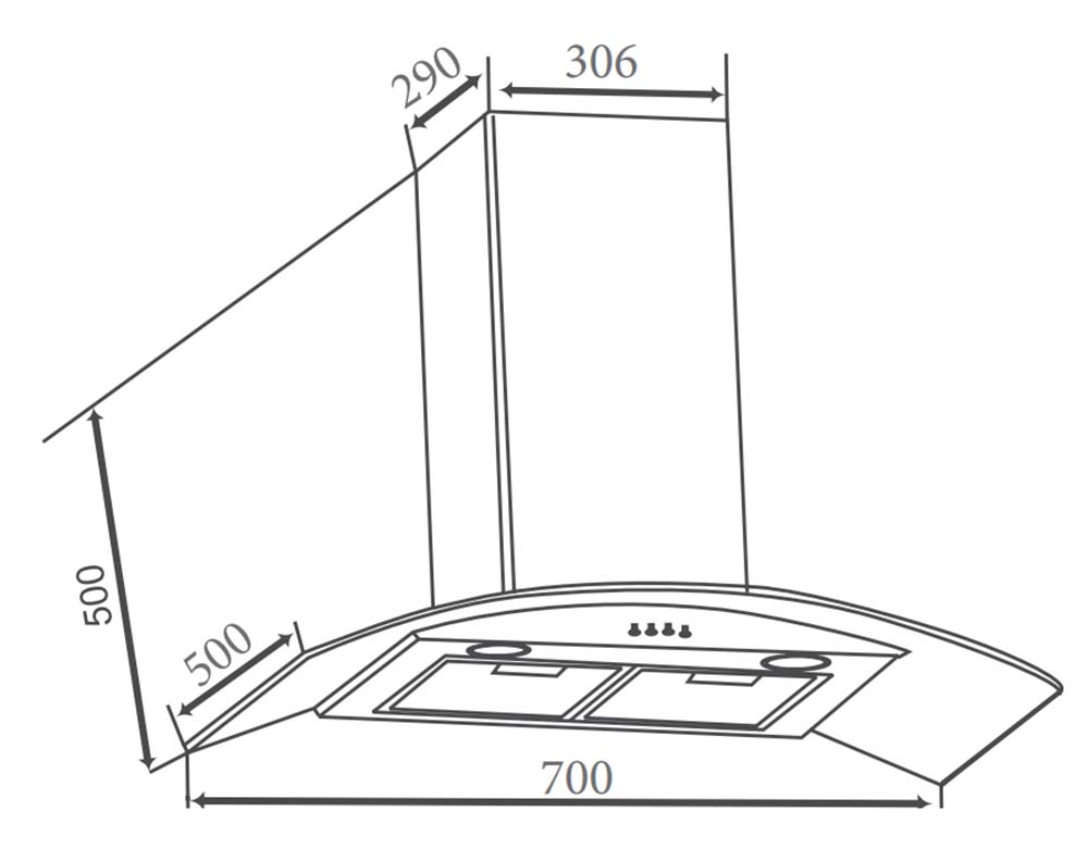 Bản vẽ kích thước Máy hút mùi CANZY CZ 806DQ 70cm kính cong