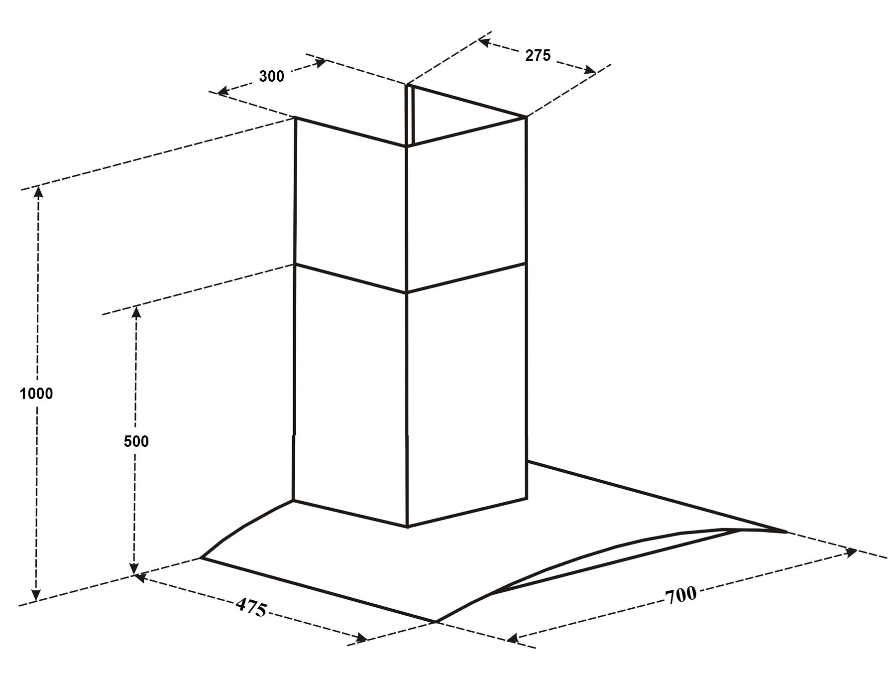 Bản vẽ kích thước Máy hút mùi CANZY CZ 8970H 70cm kính cong