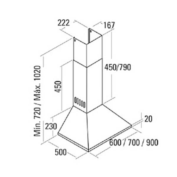 Bản vẽ kích thước Máy hút mùi CATA NEBLIA 600 X/A 02052300 60cm chữ T