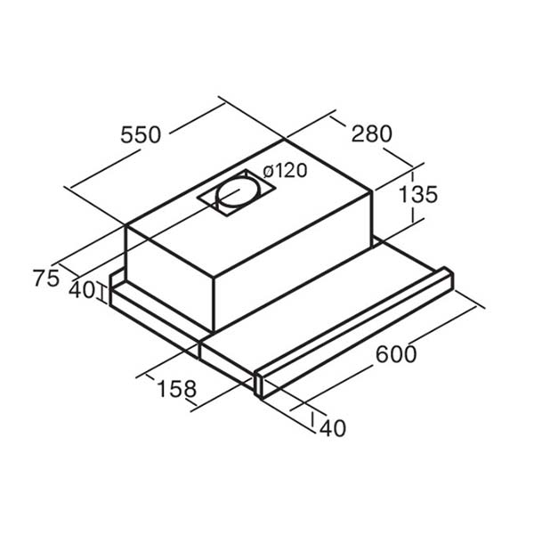 Bản vẽ kích thước Máy hút mùi CATA TF-5060 EWH 600 02033008 60cm âm tủ