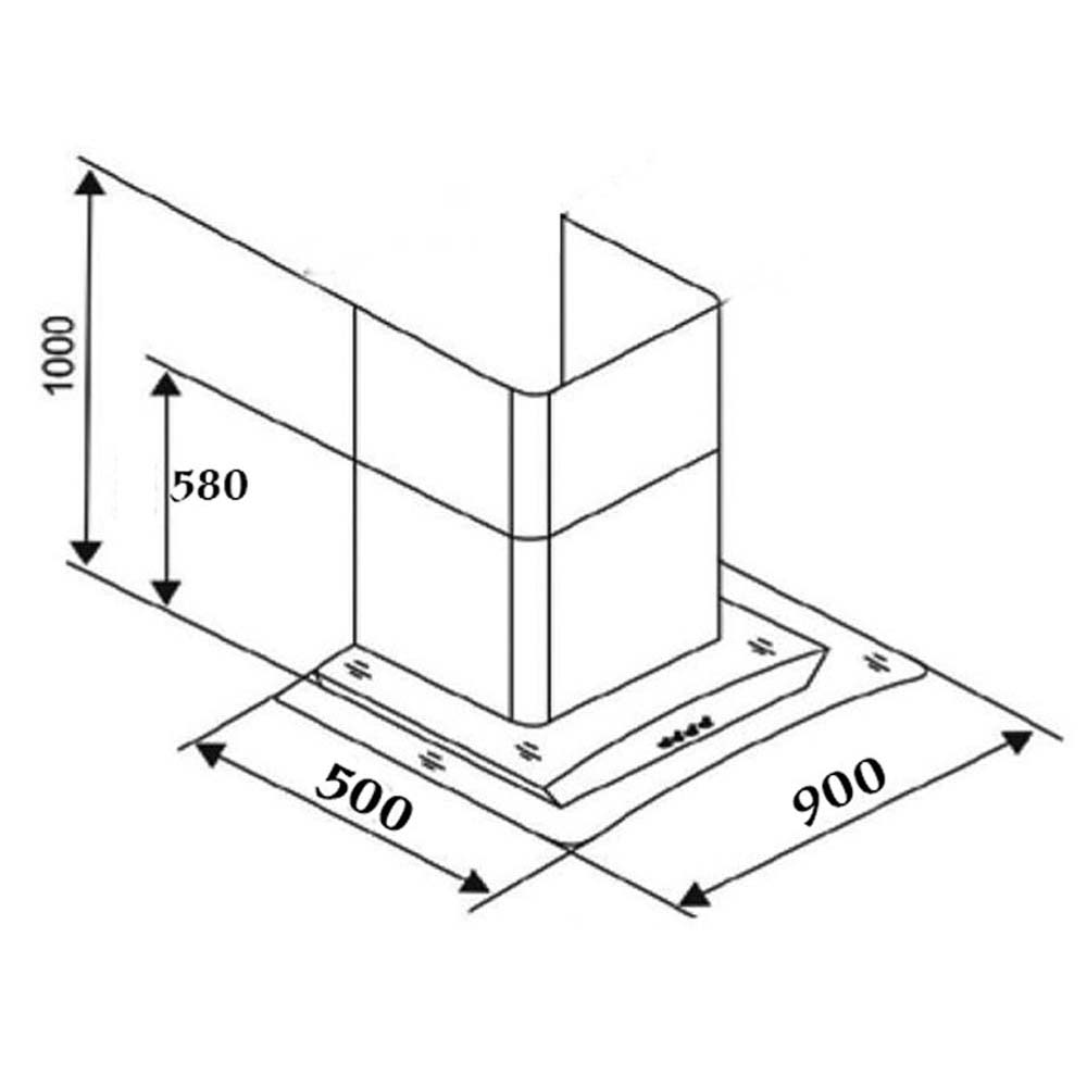 Bản vẽ kích thước Máy hút mùi CHEFS EH-CASPIA90T 90cm kính cong
