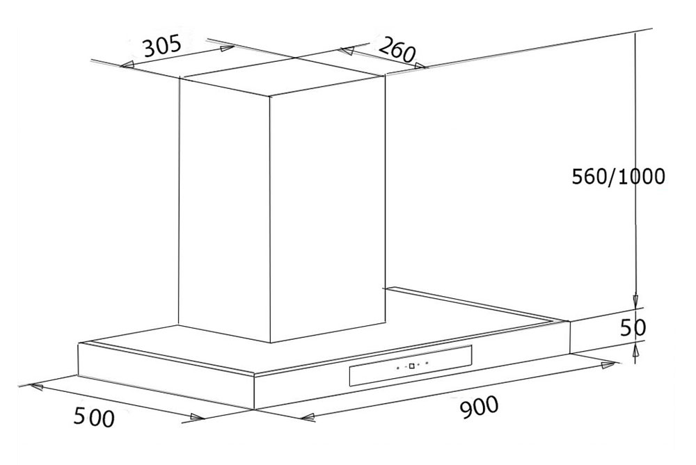 Bản vẽ kích thước Máy hút mùi CHEFS EH-R107E9D 90cm chữ T
