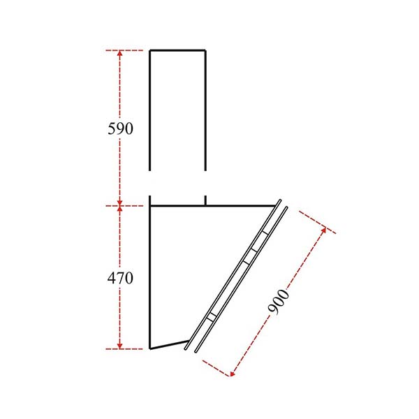 Bản vẽ kích thước Máy hút mùi CHEFS EH-R705E9 90cm kính vát