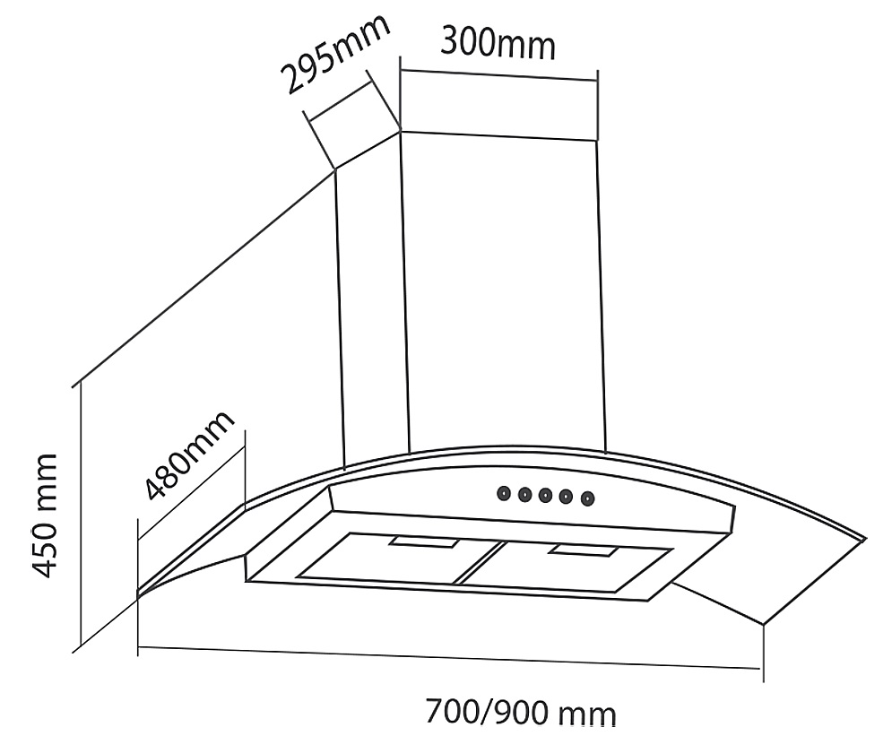 Bản vẽ kích thước Máy hút mùi EUROSUN EH-90K10 90cm kính cong
