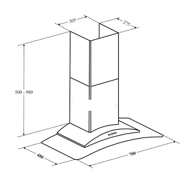 Bản vẽ kích thước Máy hút mùi FANDI FD-70YK 70cm kính cong