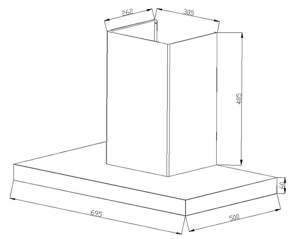 Bản vẽ kích thước Máy hút mùi FANDI FD-ECPR70 70cm chữ T
