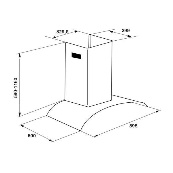 Bản vẽ kích thước Máy hút mùi FASTER ISLAND 6688 90cm kính cong