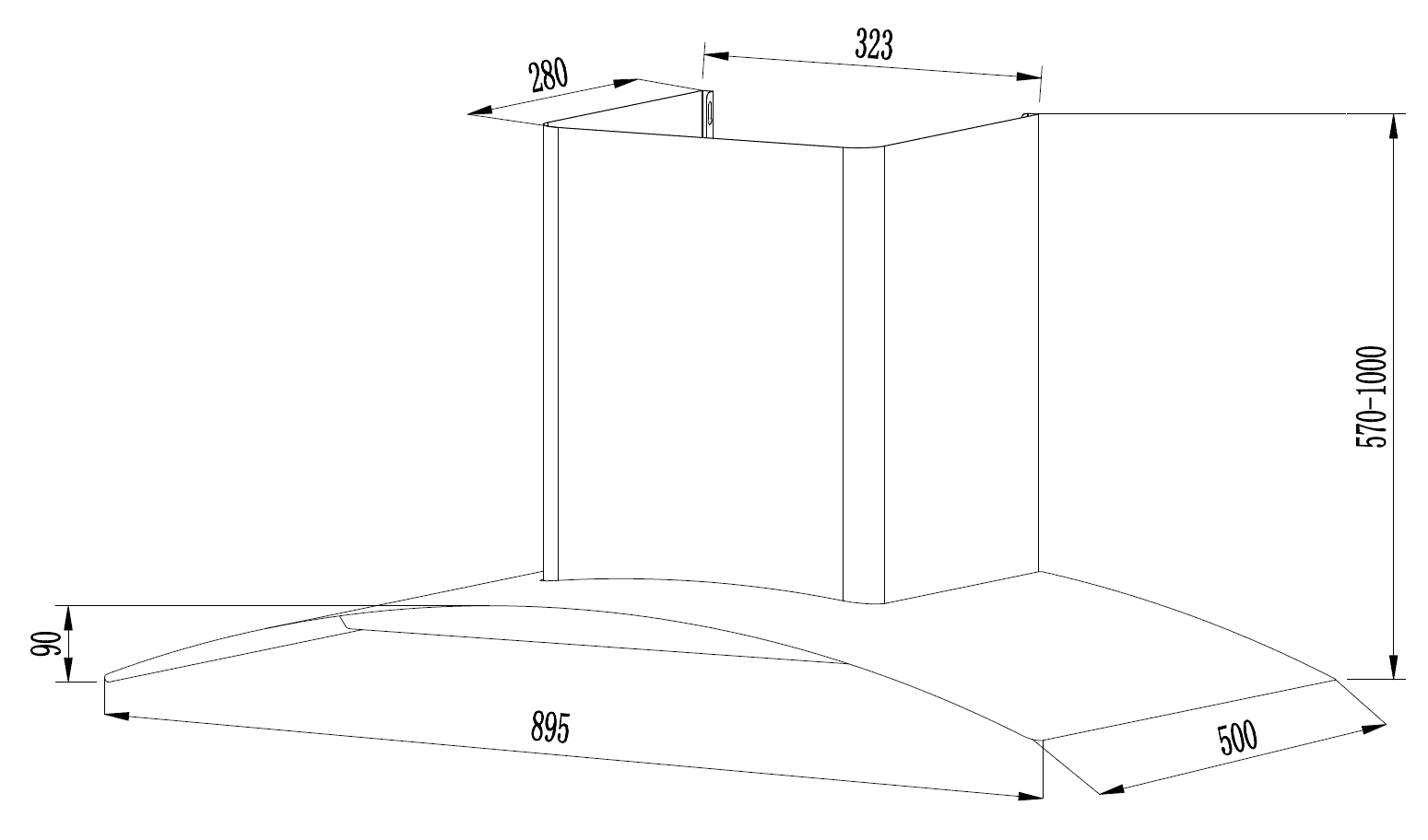 Bản vẽ kích thước Máy hút mùi FEUER H36S 90cm kính cong