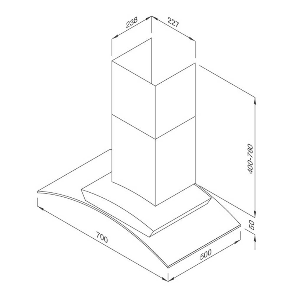 Bản vẽ kích thước Máy hút mùi MALLOCA MC 1070 70cm kính cong