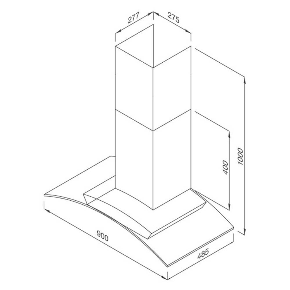 Bản vẽ kích thước Máy hút mùi MALLOCA MC 9078-900 90cm kính cong