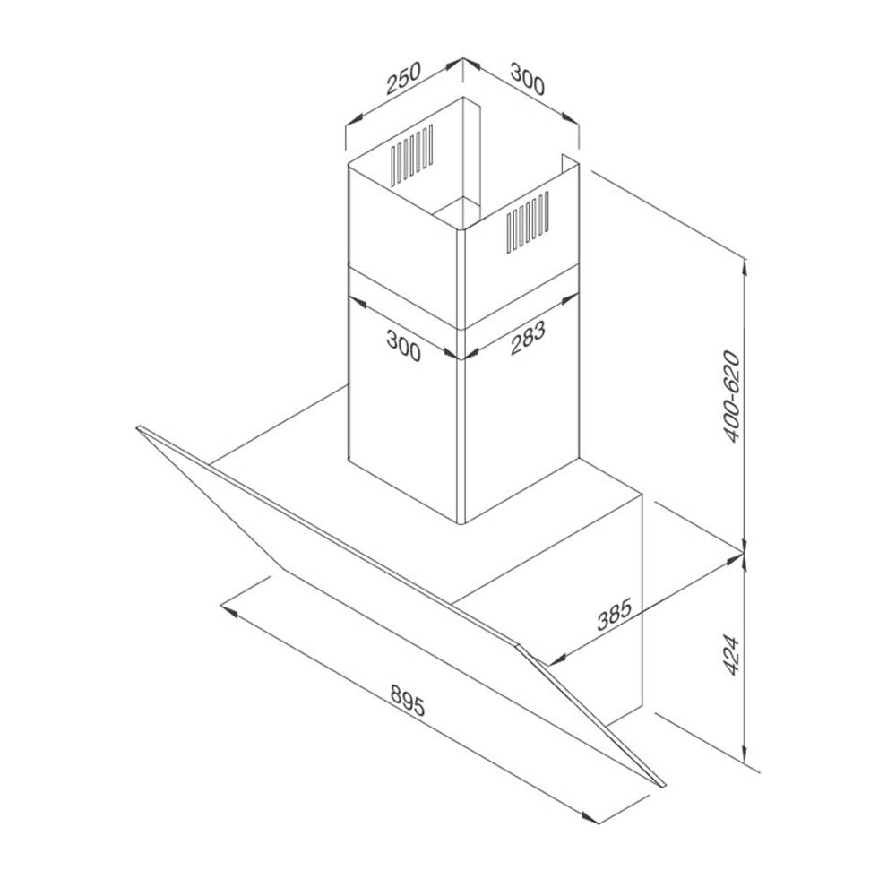Bản vẽ kích thước Máy hút mùi MALLOCA MC 9086HS 90cm kính vát