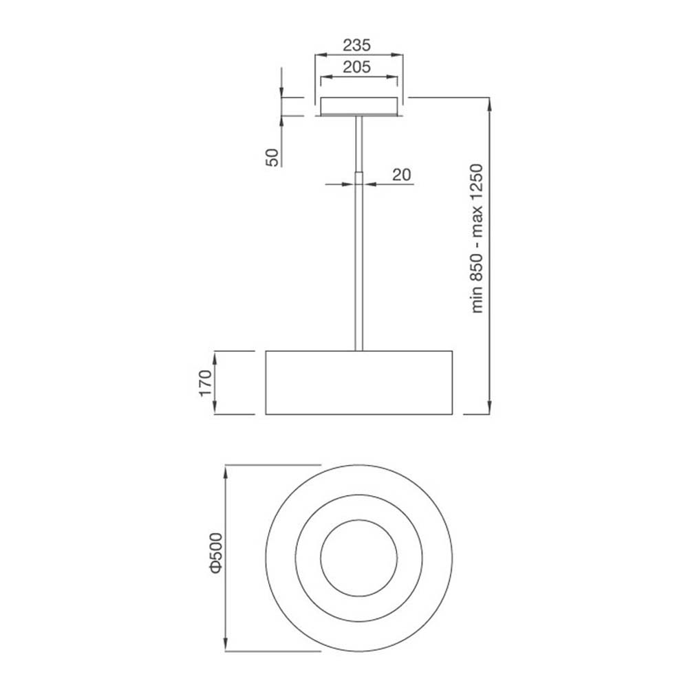 Bản vẽ kích thước Máy hút mùi MALLOCA MOON-I230F 50cm độc lập
