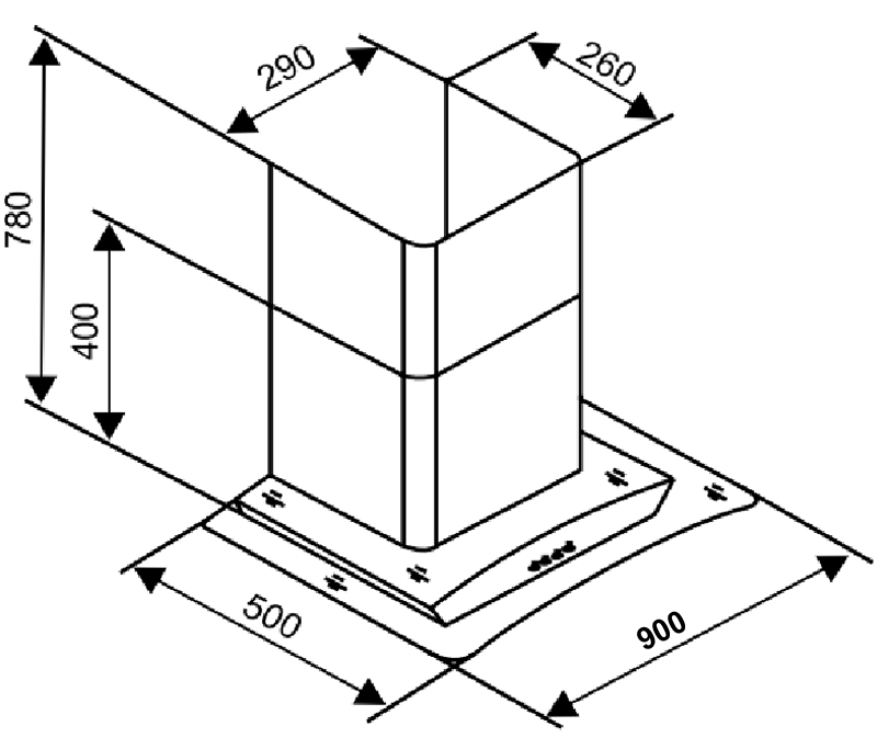 Bản vẽ kỹ thuật Máy hút mùi SEVILLA SV-890 90cm kính cong