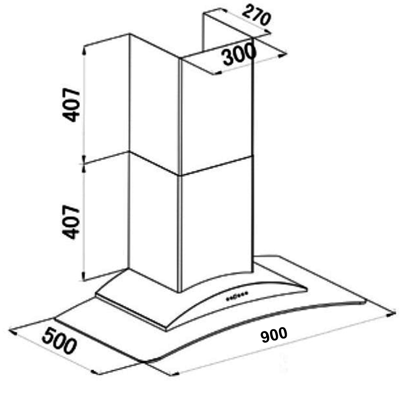 Bản vẽ kỹ thuật Máy hút mùi SEVILLA SV-LEXUS 90 90cm kính cong