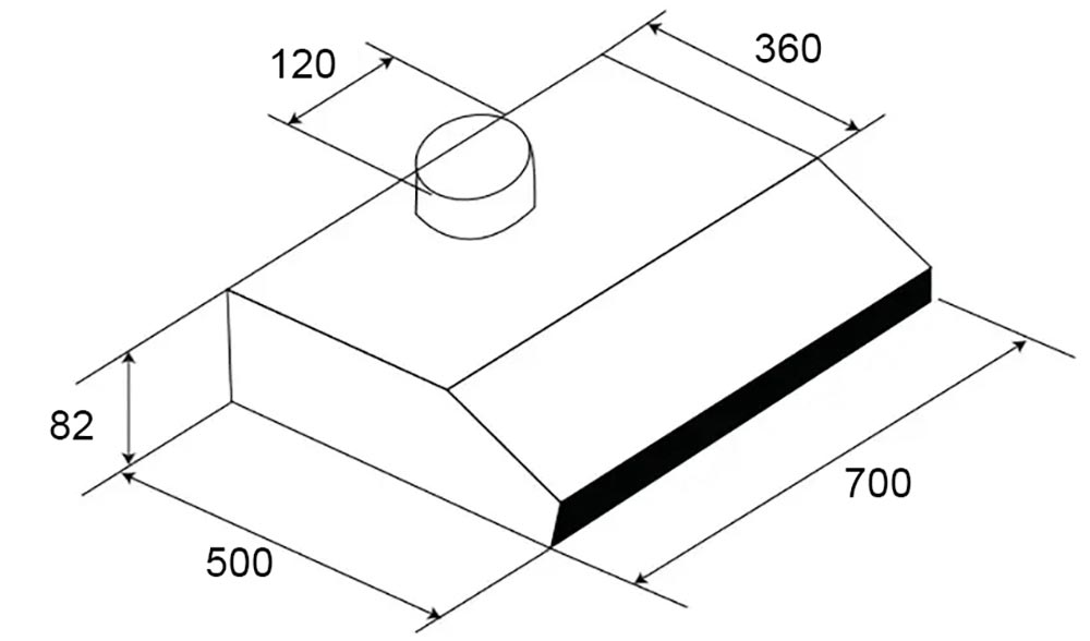 - Kích thước hút: 700 x 500 x 82 mm