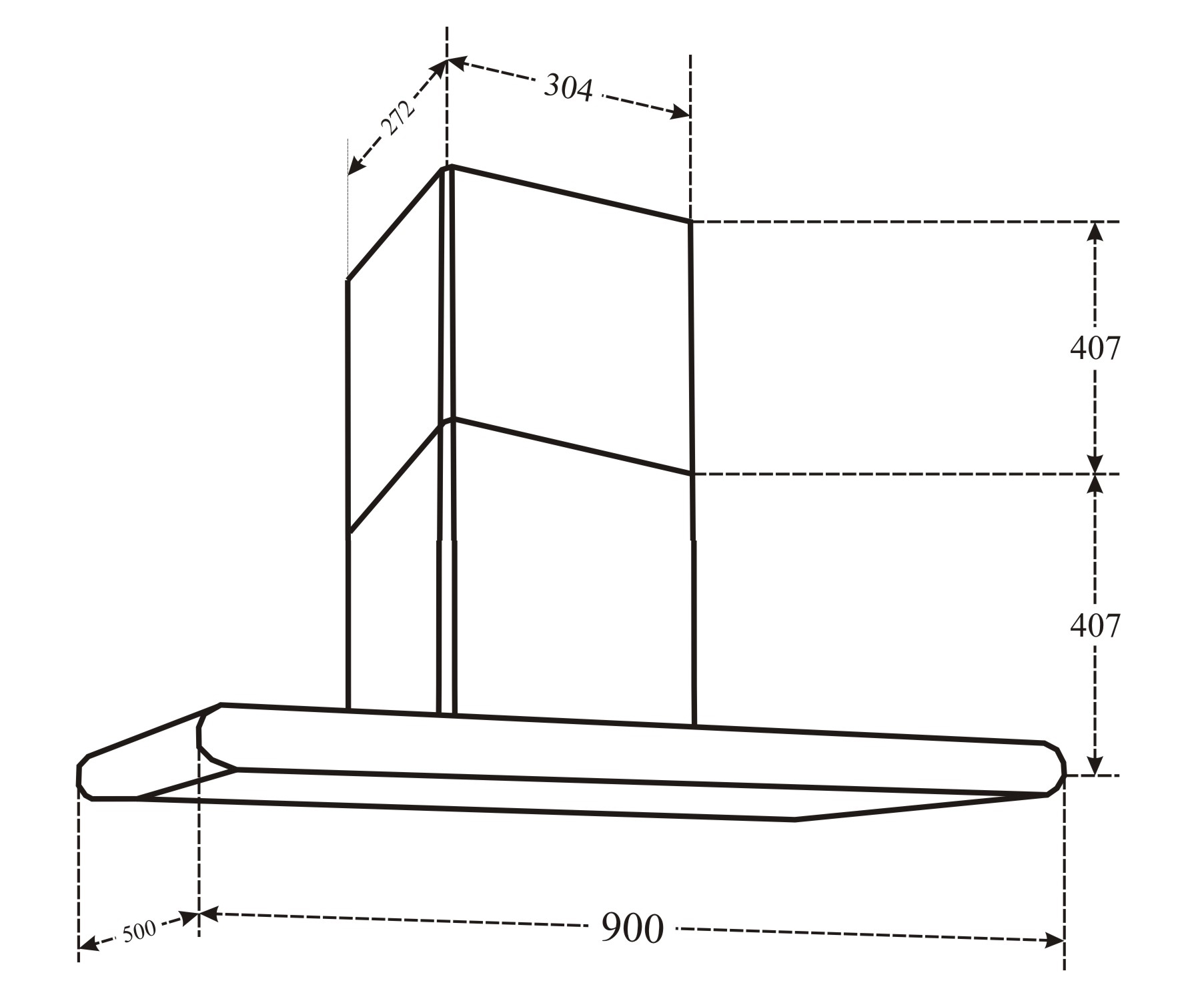 Bản vẽ kỹ thuật Máy hút mùi SEVILLA SV-TK 90 90cm chữ T