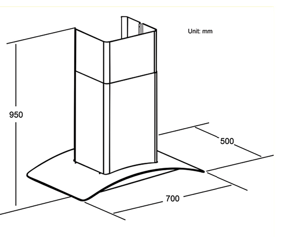 Bản vẽ kỹ thuật Máy hút mùi SPELIER SP-651G 70cm kính cong