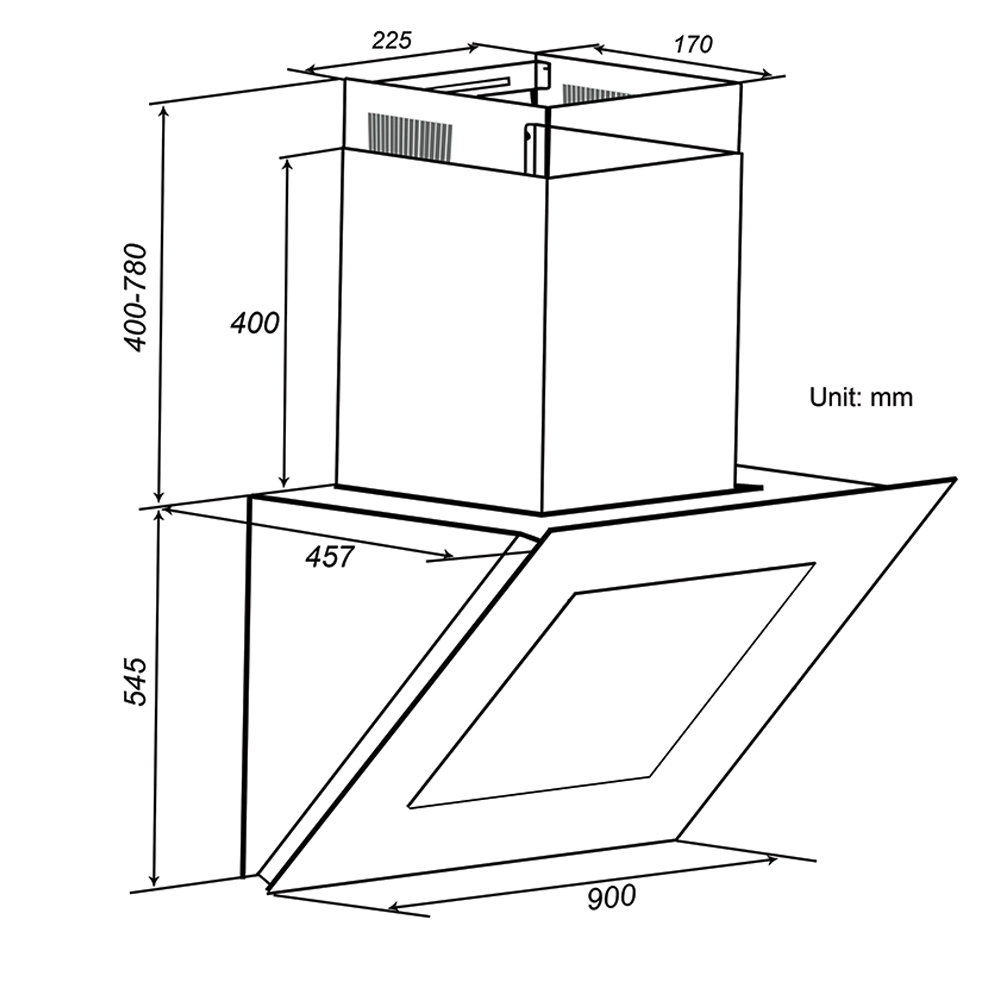 Bản vẽ kỹ thuật Máy hút mùi SPELIER SP-888 90cm kính vát