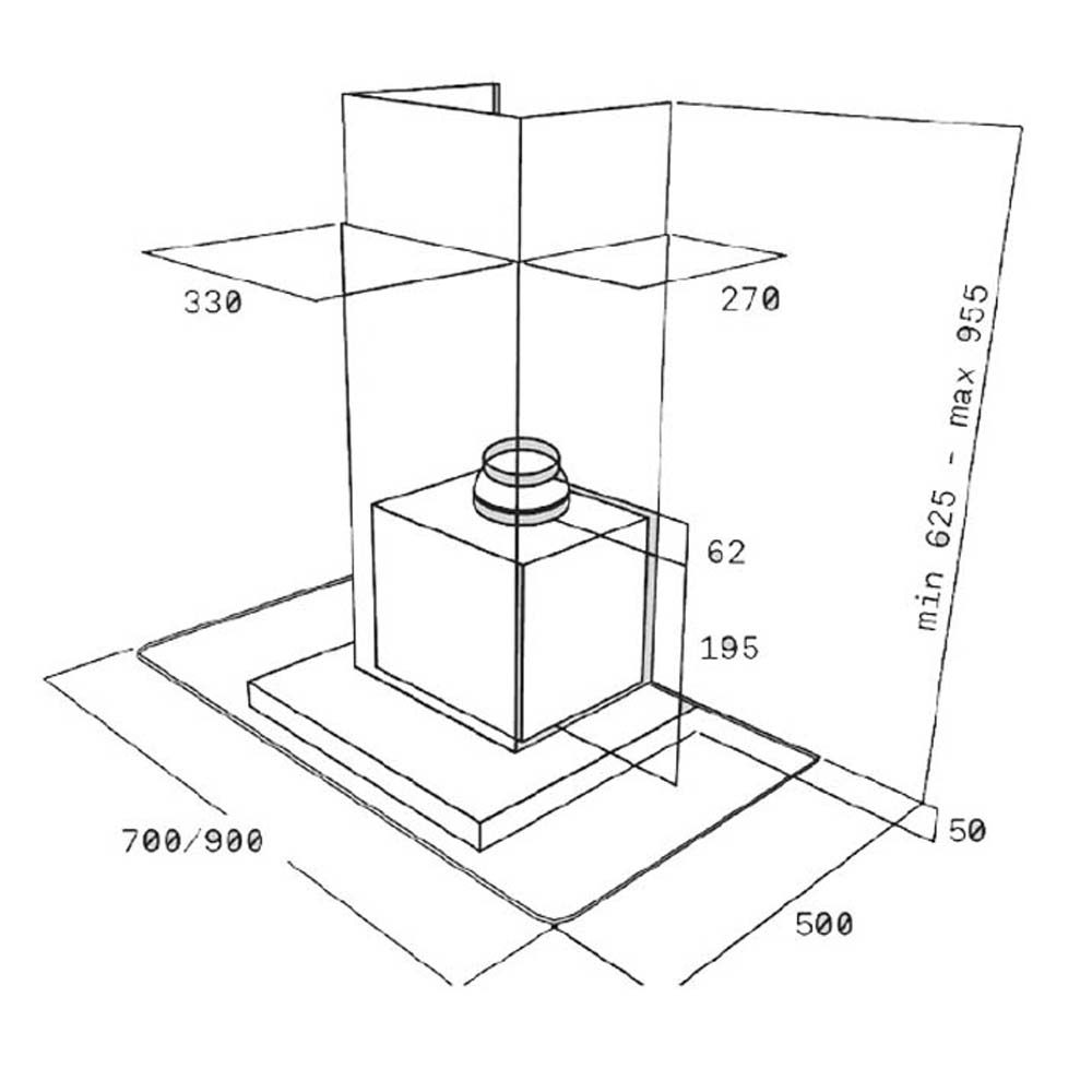 Bản vẽ kích thước Máy hút mùi TEKA DG 780 70cm độc lập