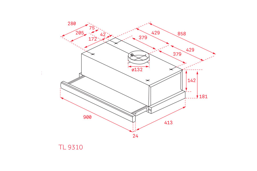 Bản vẽ kích thước Máy hút mùi TEKA TL 9310 40474390 90cm âm tủ