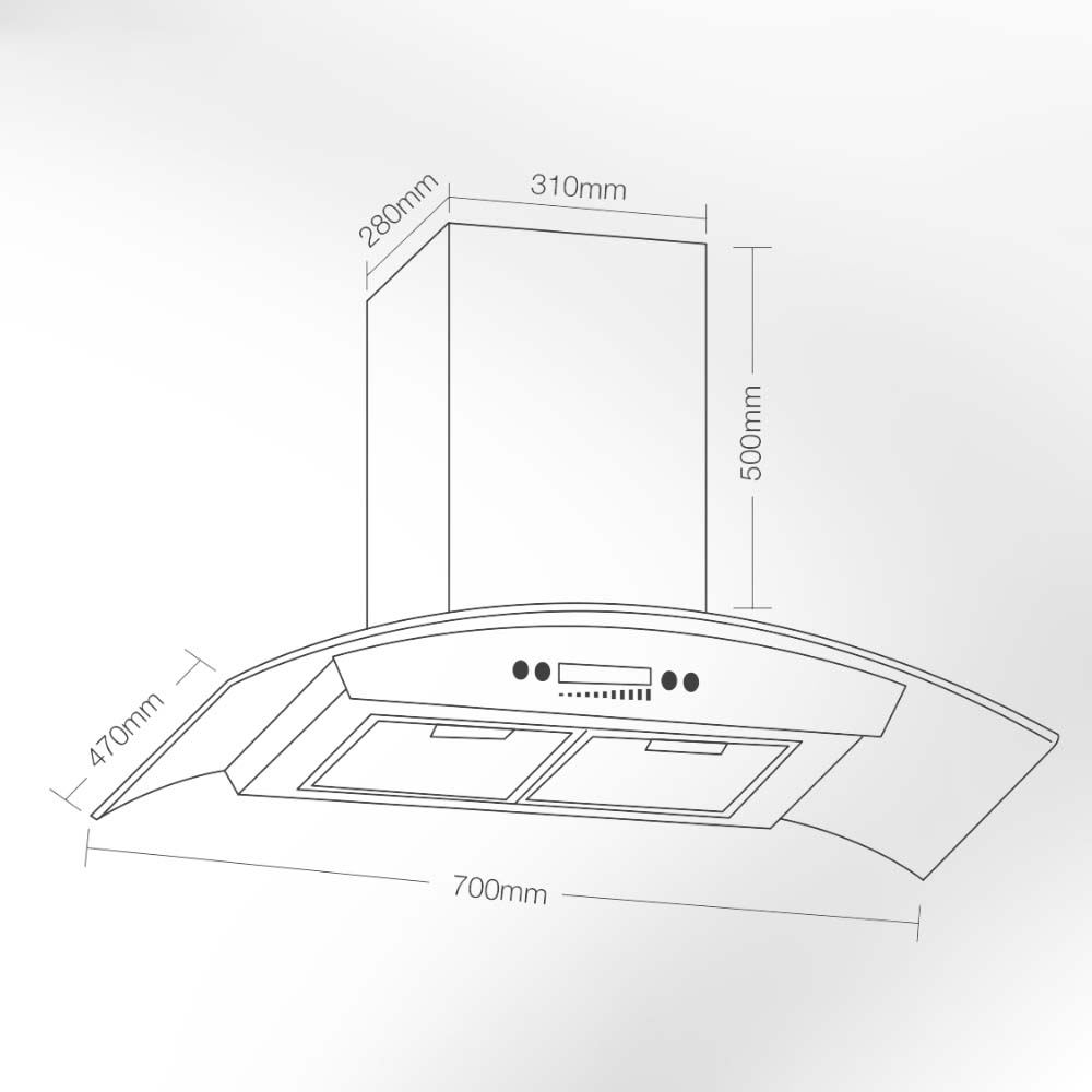 Bản vẽ kích thước Máy hút mùi VINGER VG-227-I 70cm kính cong