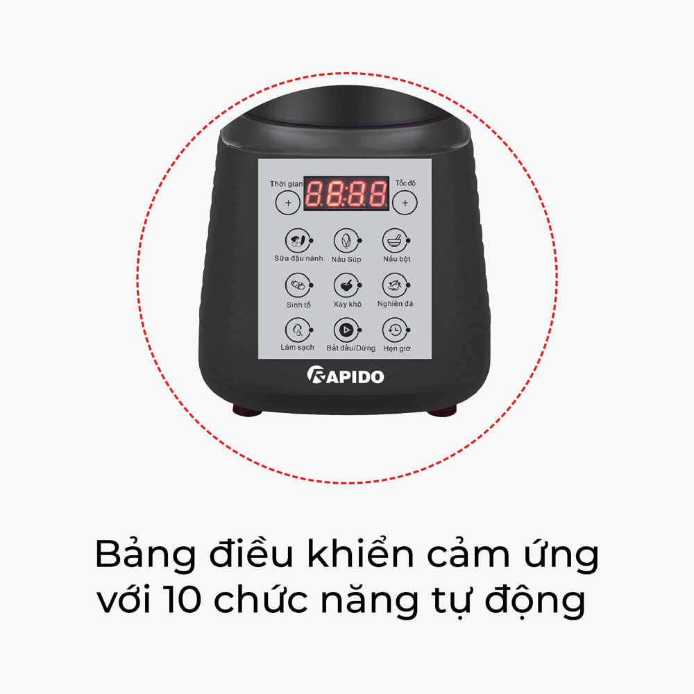 - RHB1800D Động cơ mạnh mẽ: Với động cơ 100% đồng nguyên chất, máy vận hành mạnh mẽ và bền bỉ, đảm bảo khả năng xay nấu nhanh và hiệu quả.