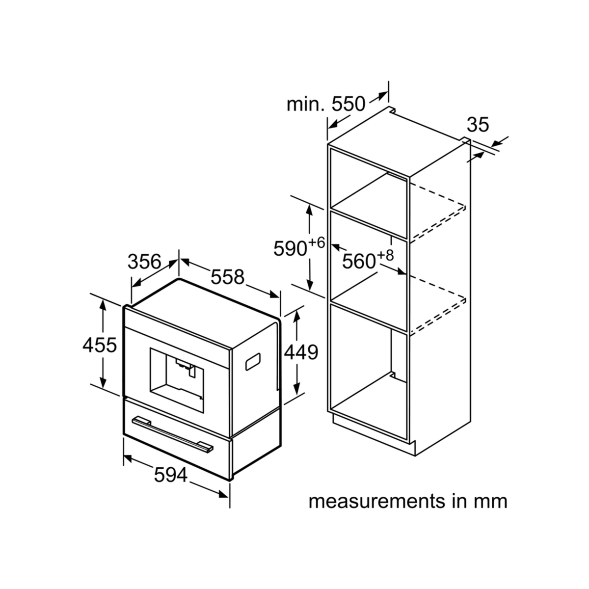 Bản vẽ kích thước Máy pha cà phê BOSCH HMH.CTL636ES6 âm tủ