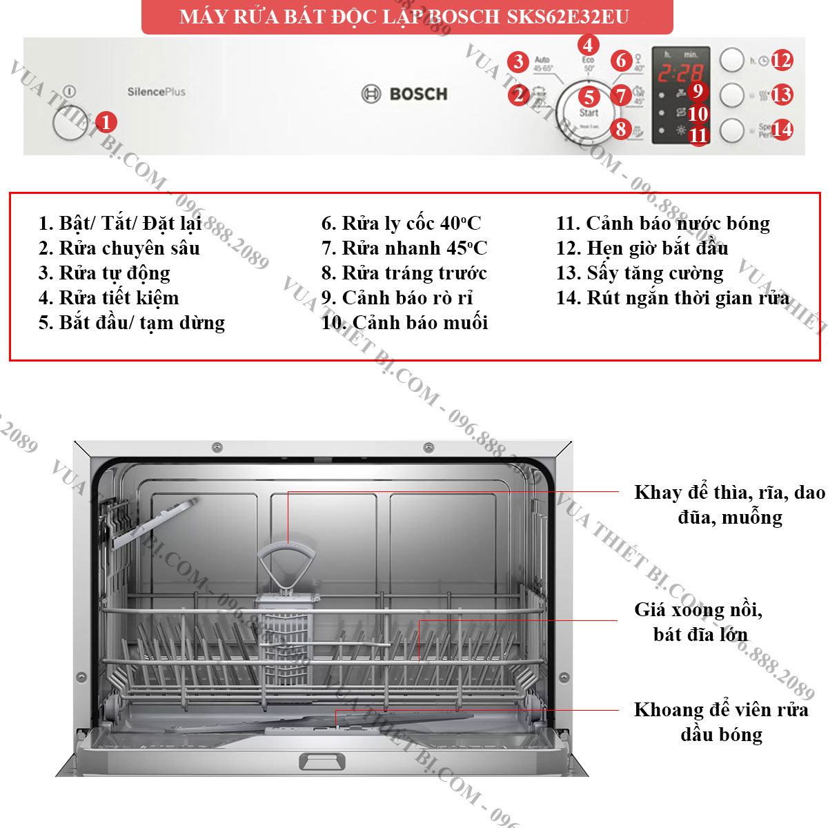 - Tên sản phẩm: Máy rửa bát độc lập Bosch SKS62E32EU