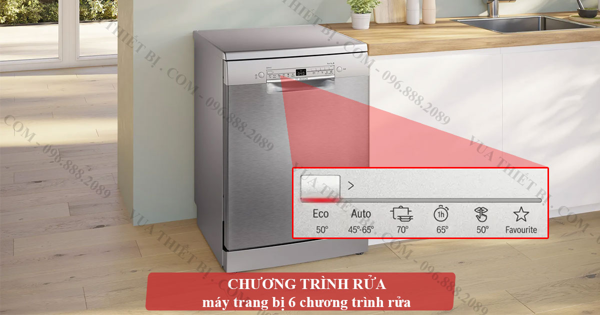 Máy rửa bát Bosch SMS2HTI79E thuộc dòng Serie 2, với 6 chương trình rửa và 4 tùy chọn bổ sung, đáp ứng nhu cầu đa dạng của người dùng. Dưới đây là các chương trình và công dụng của từng chương trình: