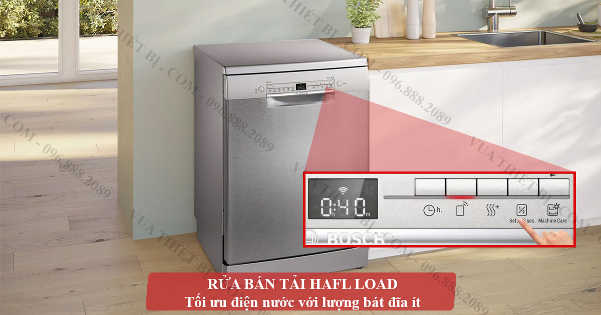 - Half Load: Chế độ rửa nửa tải, tiết kiệm năng lượng khi chỉ rửa một lượng bát đĩa nhỏ