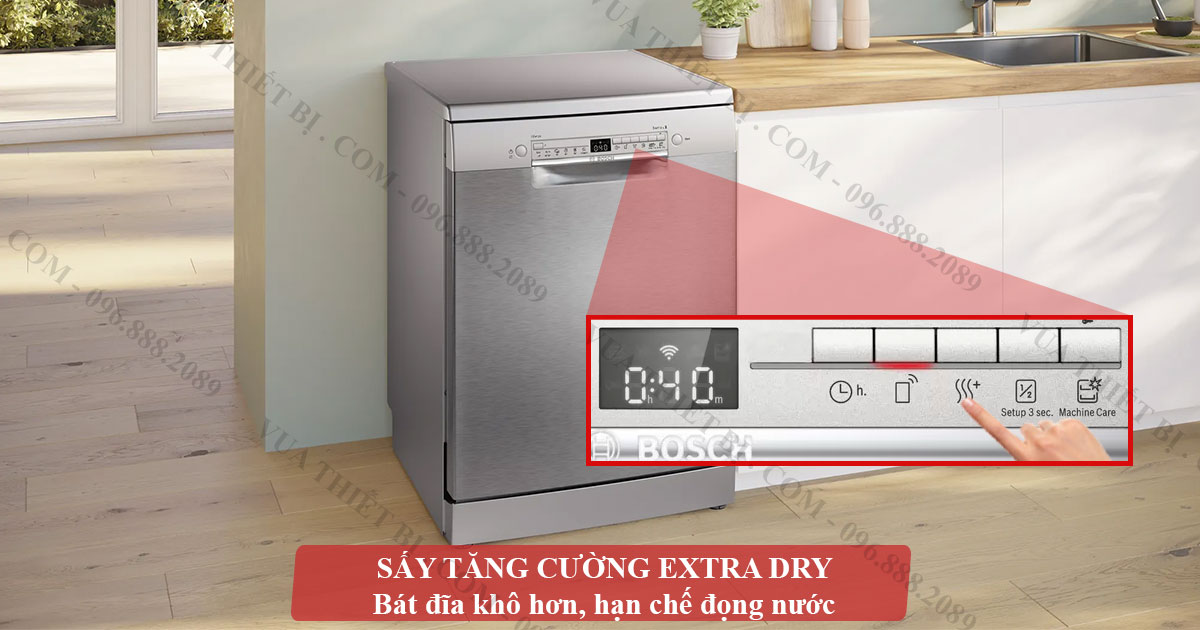 - ExtraDry: Chức năng sấy tăng cường giúp bát đĩa khô nhanh chóng, ngăn ngừa vi khuẩn và vết nước còn sót lại.