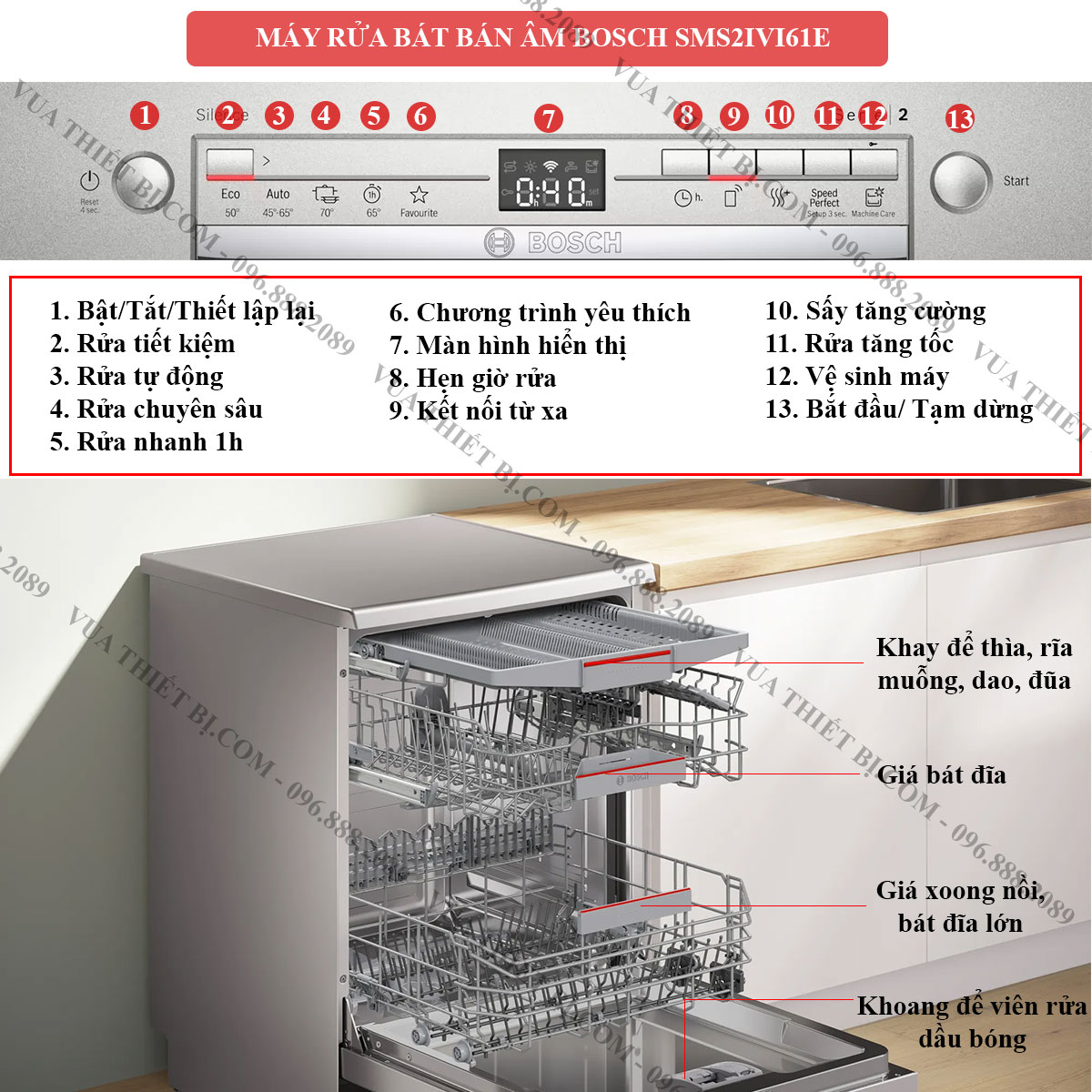 Thông Số Kỹ Thuật Máy rửa bát BOSCH SMS2IVI61E serie 2 độc lập