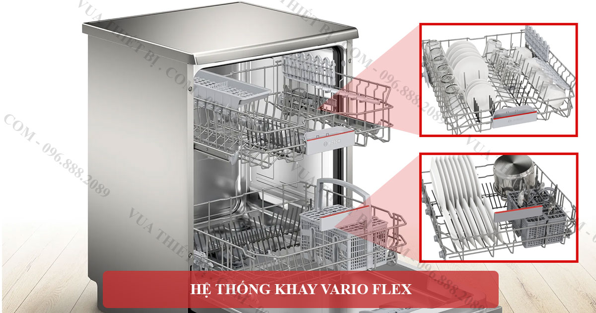 Máy rửa bát Bosch SMS4EKI06E có 3 khay rửa tiện lợi:
