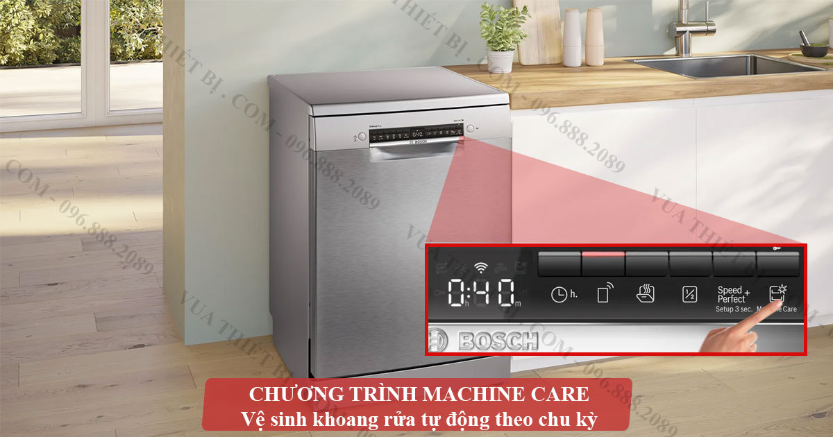 - Machine Care: Chương trình vệ sinh máy – làm sạch khoang rửa và loại bỏ cặn bẩn.