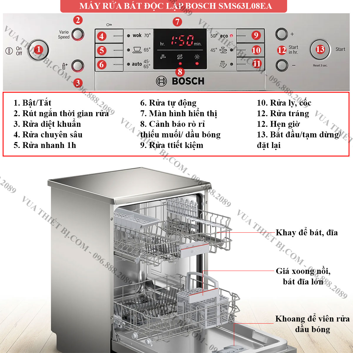 Thông Số Kỹ Thuật Máy rửa bát BOSCH SMS63L08EA serie 6 độc lập