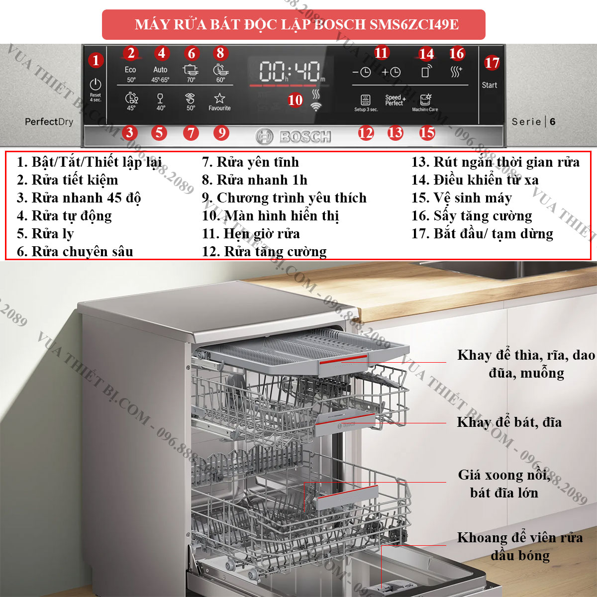 Thông Số Kỹ Thuật Máy rửa bát BOSCH SMS6ZCI49E serie 6 độc lập