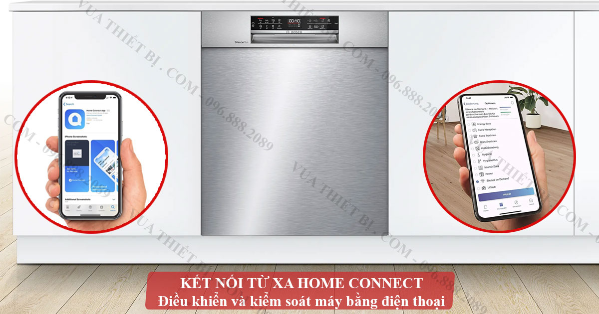 - Home Connect: Kết nối với smartphone, điều khiển và giám sát máy từ xa.