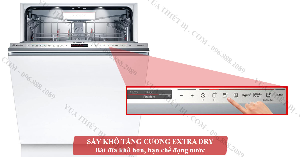 - Sấy tăng cường Extra Dry: nước ở chu kỳ cuối sẽ được làm nóng cao hơn giúp hơi nước bay hơi nhanh và dễ hơn