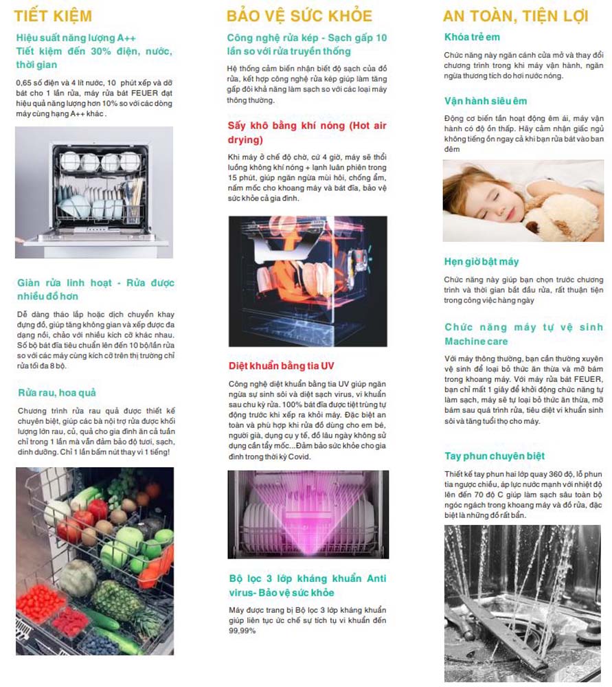 Tính năng Máy rửa bát FEUER GB1068 đặt bàn