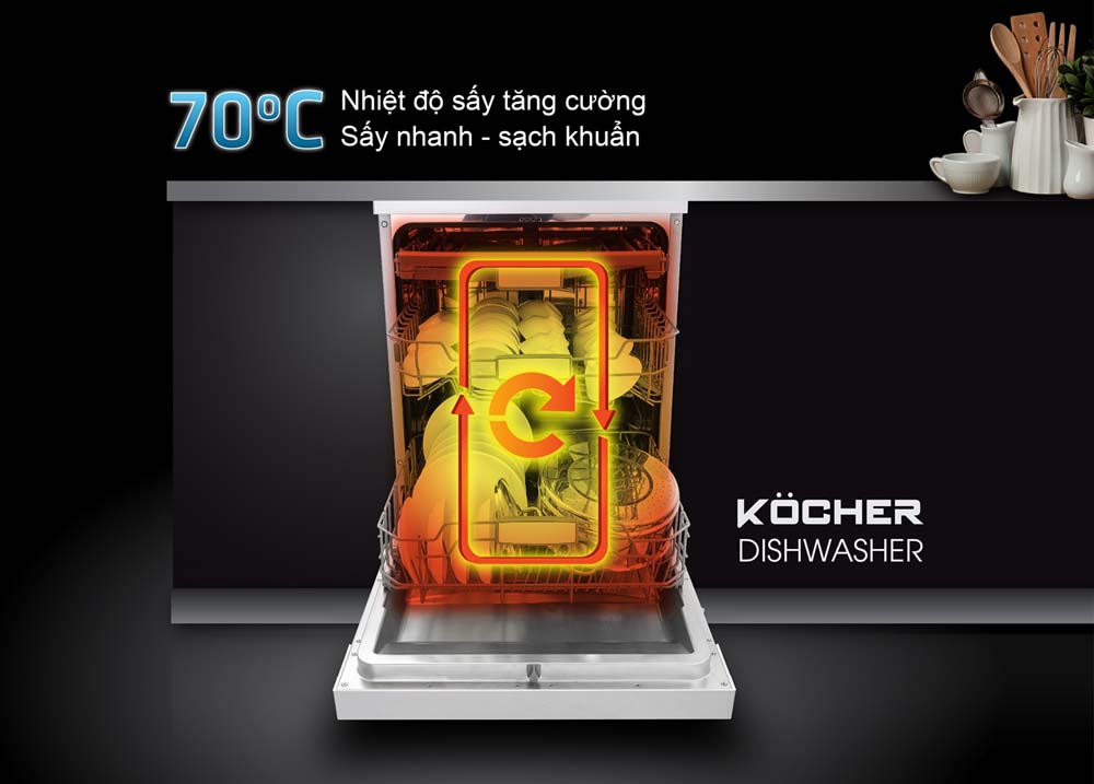 - Chức năng sấy tăng cường: Đảm bảo độ khô ráo hoàn hảo cho bát đĩa sau khi rửa.