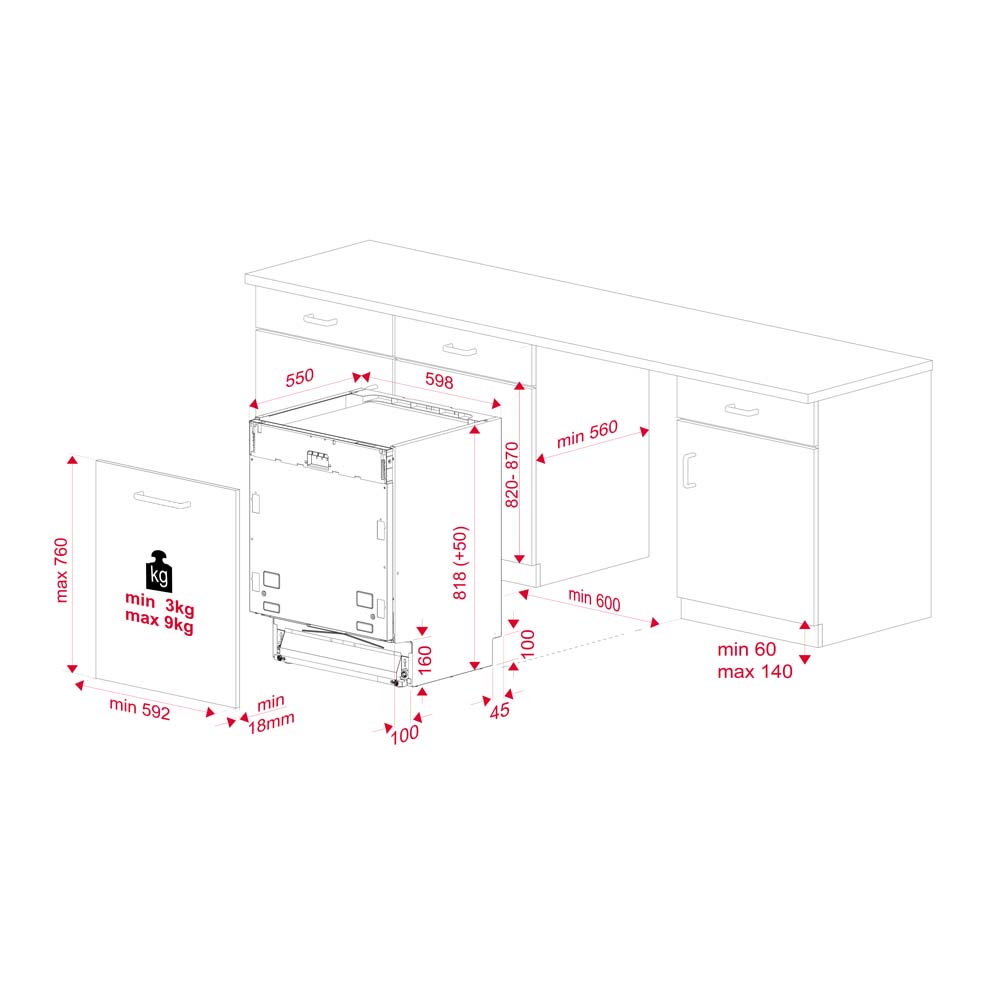 Bản vẽ kích thước Máy rửa bát TEKA DFI 76950 WH âm tủ