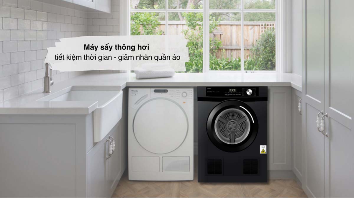Với khả năng sấy tối đa 9kg quần áo, máy đáp ứng tốt nhu cầu sử dụng của các gia đình từ 3 đến 5 thành viên. Khối lượng sấy này phù hợp cho việc sấy khô quần áo hàng ngày, đặc biệt hữu ích trong điều kiện thời tiết ẩm ướt hoặc không gian phơi hạn chế.