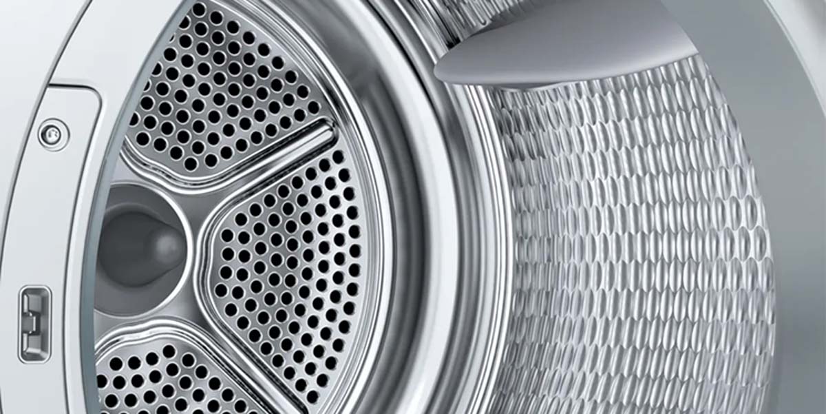 Với thiết kế lồng sấy dạng cấu trúc tổ ong kết hợp luồng khí tỏa đều, Bosch WTH85008SG bảo vệ sợi vải khỏi hư tổn và ngăn ngừa hiện tượng nhăn nhúm. Chức năng này đặc biệt phù hợp với các chất liệu nhạy cảm như cotton, len, lụa, giúp quần áo sau sấy luôn mềm mại, dễ gấp và tiện sử dụng ngay.