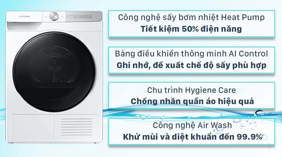- Hygiene Care: Sấy khô diệt khuẩn, loại bỏ 99.9% vi khuẩn và vi rút