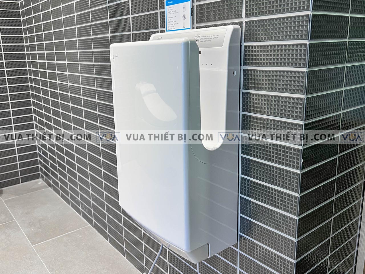 - Thiết kế treo tường gọn gàng, hiện đại: Máy được thiết kế để treo tường, giúp tiết kiệm không gian và phối hợp tốt với nhiều loại không gian vệ sinh khác nhau.