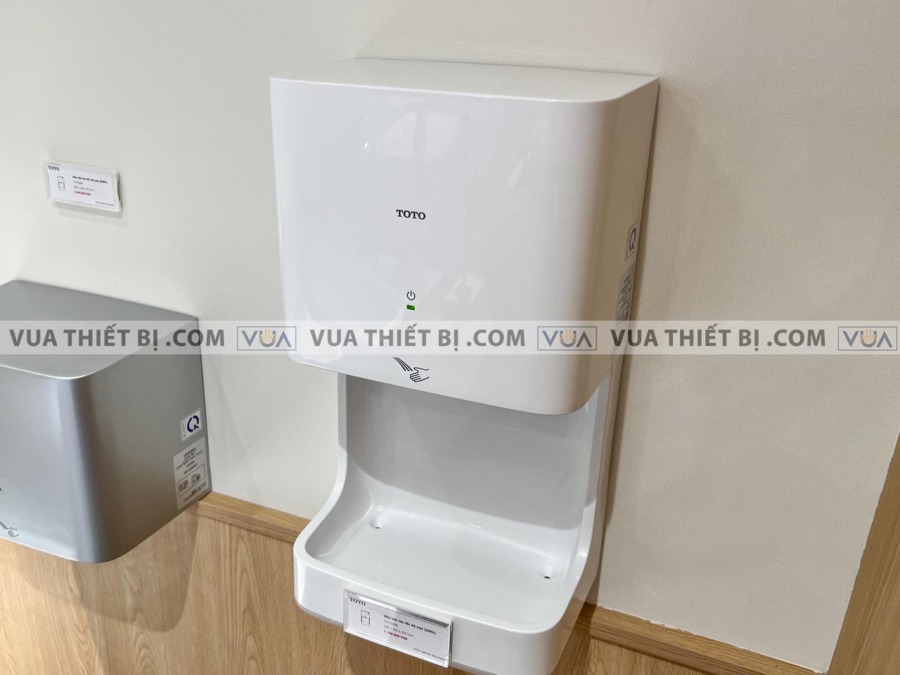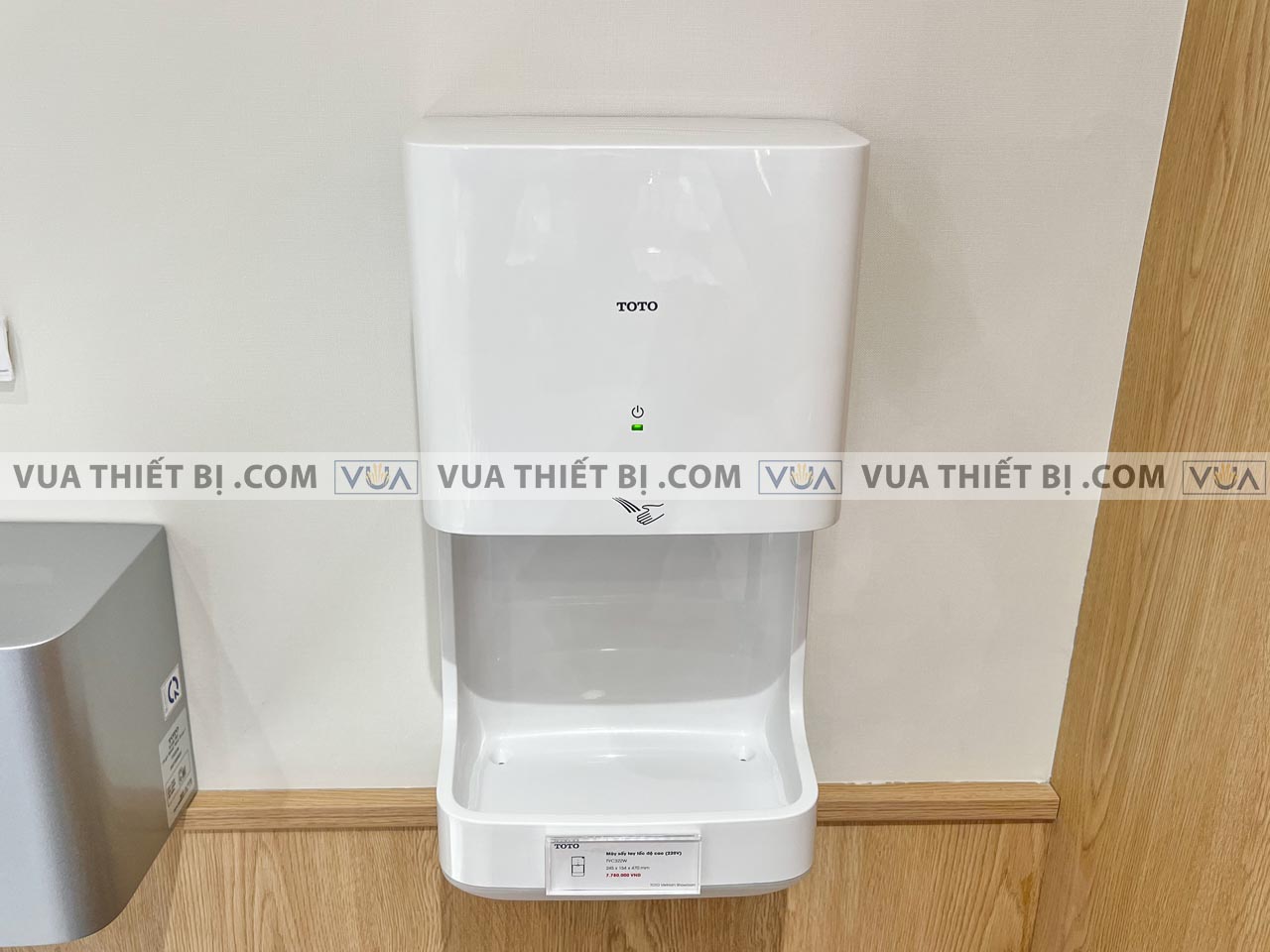 - Thiết kế treo tường gọn gàng, hiện đại: Máy sấy tay được thiết kế để treo tường, tạo điểm nhấn cho không gian vệ sinh với kiểu dáng hiện đại và gọn gàng.