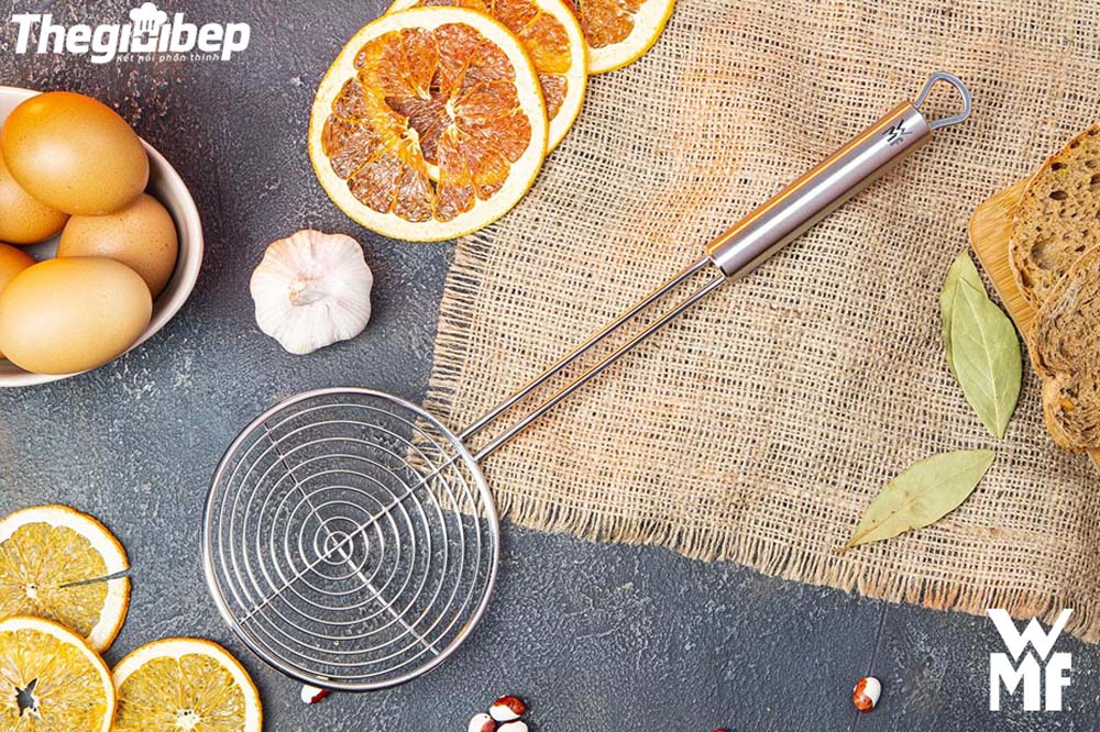- Muôi vớt đồ ăn WMF Profi Plus Skimming Ladle cũng được thiết kế với khoen tiện lợi trên tay cầm, giúp tiết kiệm không gian lưu trữ trên móc. Thiết kế này của WMF mang tính thẩm mỹ tinh tế và vượt thời gian, phù hợp cho bất kỳ căn bếp nào.
